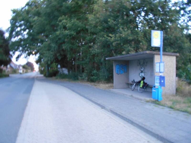 Daarna waren het Duitse wegen de heuvel over Bad Bentheim door. Het ging echt hard vandaag... ik had de route via Ohne willen doen maar het was nog donker en uit angst om een afslag te missen ben ik maar via Schüttorf naar Rheine gefietst. In de buitenwijken van Rheine in zo'n typisch Duits bushokje paar bammetjes soldaat gemaakt. Daarna was het wonder geschied en werd het licht.
