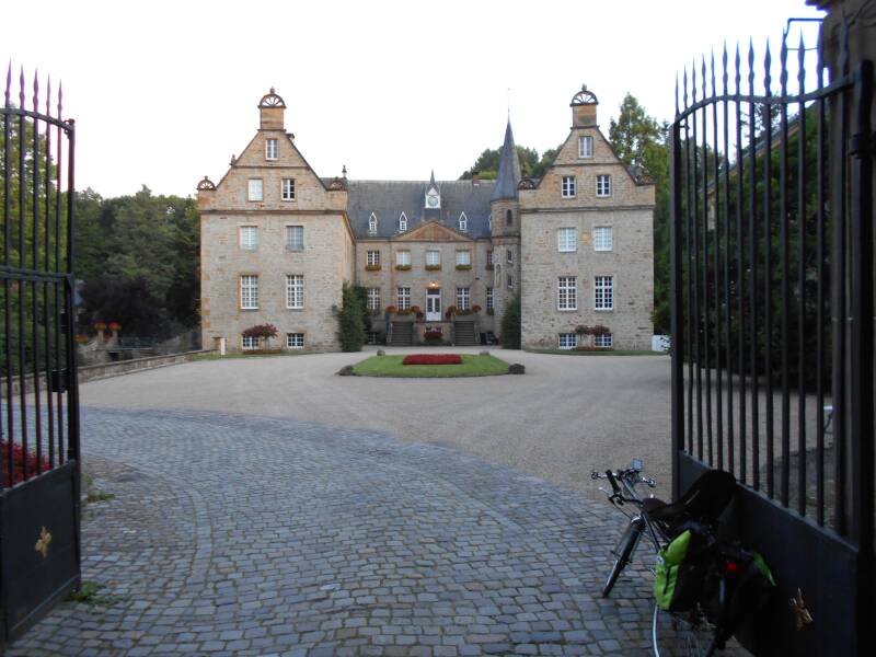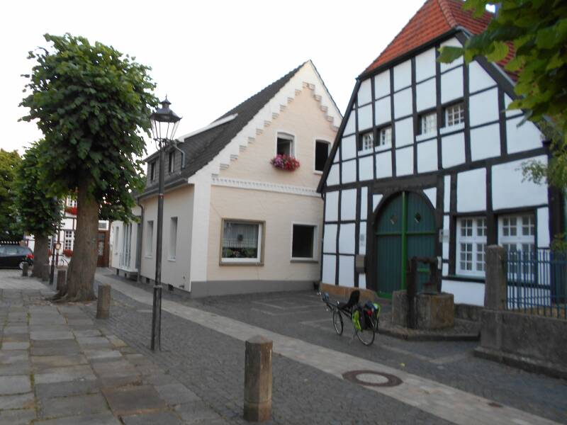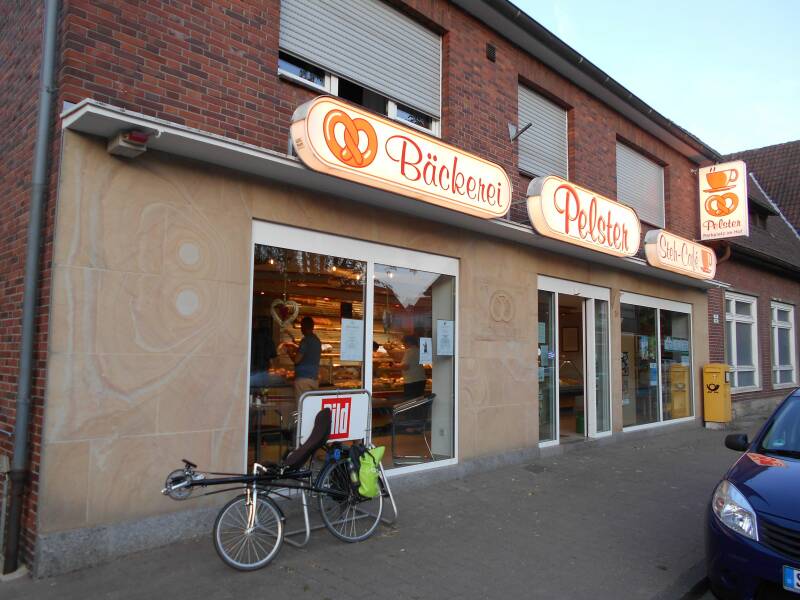 Nadat ik bij bij een spoorwegovergang gewacht heb op de langste trein van Europa, kon ik zo'n 6 km verderop rechtsaf om even verderop Schloss Surenburg op de foto te zetten. Daarna even rondkijken in het mooie plaatsje Bevergern met mooie vakwerkhuisjes. Even bij de bakker wat broodjes gehaald en verder ging het weer.