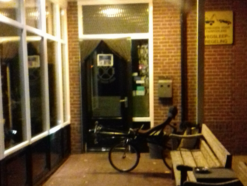 Na Hoevelaken was ik wel weer toe aan een bakkie. Deze heb ik gehouden in Amersfoort bij een restaurant waar ik wist dat 's nachts ook een wc open is. Ideaal. Bij de kei links, weer een bosweg n237 richting Utrecht. Wat een mensen daar in de stad nog 's nachts rondloopt zeg. Verderop langs de koffiefabriek, Vleuten en ik was inmiddels op onbekend terrein in Woerden. Ze zijn me daar te karig met de straatnaamborden. Gelukkig had ik het met richtingsgevoel al vrij vlot de goede weg gevonden, en rolde ik de volgende provincie binnen. Bakkie in hartje Driebruggen en inmiddels was de ochtendschemering begonnen. Bijzonder om dan in de mist door de Reeuwijkse plassen te gaan, wat is het daar dan mooi, een aanrader.