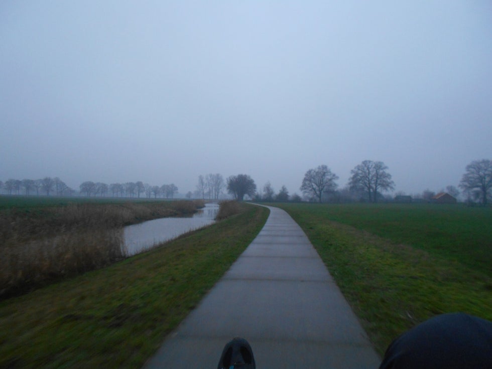 Het leek me wel prima idee het jaar goed te beginnen. Niet gelijk voor gek en onwijs honderden kilometers wegtrappen terwijl het meeste moois in het donker langs je heenvliegt. Het weer was rustig genoeg voor een tochtje tussen het krieken en de koffie op de zaterdagmorgen. Ik las toevallig dat juist vandaag de aarde het dichtst bij de zon zou komen dit jaar. En ik maar denken dat de afstand altijd hetzelfde is. Maar echt de moeite nemen om het na te meten laat ik maar aan deskundigen over, met de mist heb ik er niet veel gemerkt.