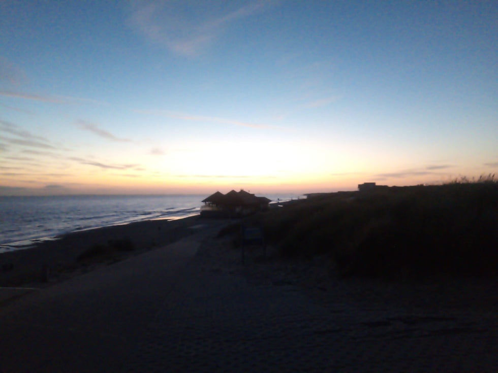 Langs de kustlijn noordwaarts genieten we samen van de kleuren in de lucht. We praten niet veel. Het is de zee die het meeste geluid maakt. Zijn fiets zoemt, de mijne ratelt. Hij vliegt de duinen naar boven, ik heb een wat langere aanloop nodig. We komen nauwelijks mensen tegen. Een enkeling waagt zich naar de rand van Nederland. De zwart witte vuurtoren zendt haar lichtsignalen naar de schepen op zee. Vlissingen kun je zien liggen. De haven van Breskens staat vol rijkdom waarvan de waarde uitgedrukt wordt in boten en dure auto's. Wij voelen ons misschien wel rijker nu we gezond de zon boven de horizon uit zien komen als de zee Westerschelde wordt.