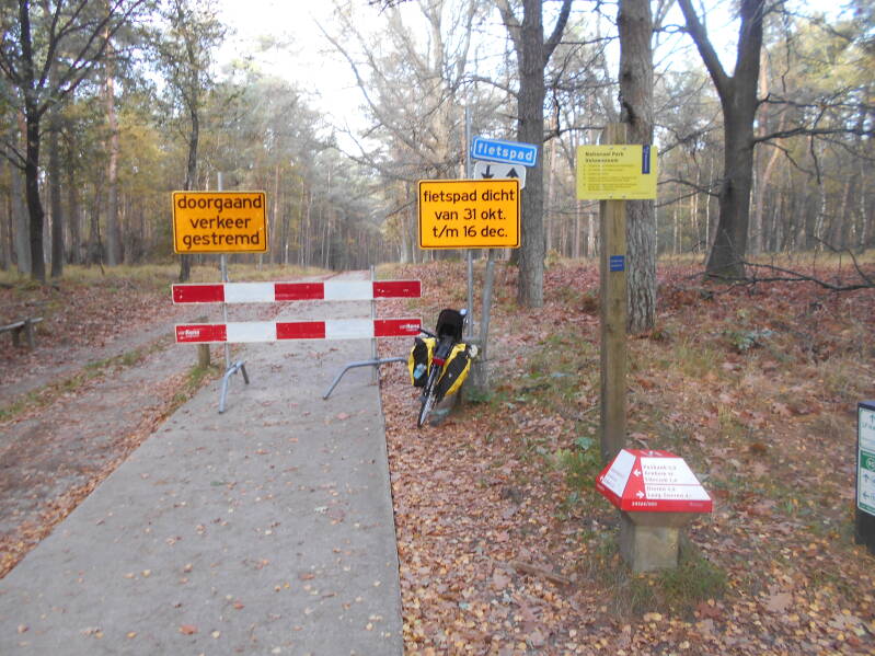 Het pontje bij Olburgen deelde ik met een vrouw op de fiets die in buurt woonde. Ze ging vaak met de kinderen op fietsvakantie en bleef steeds weer Nederlands ontdekken. Met het oversteken van de IJssel ruilde ik voor een euro Olburgen voor Dieren, de Achterhoek voor de Veluwe en Koude gure weer voor najaarszonnetje. Onder Dieren voorbij de tunnel wees de rode pijl van teasy1 me gelijk rechts, maar het spoorwegovergang oftewel het hele fietspad richting knooppunt 74 was hermetisch afgesloten. Twee opties, terug naar Dieren of verder naar De Steeg. Ik koos voor optie 2. In de Steeg herinner ik me bakkerij van Otterloo. Welke rit weet ik niet meer, maar ik stond hier ooit eens een regenpak aan te doen 's morgens rond een uur of 6. De bakker dacht dat ik de krant kwam brengen. Ik had geen krant, ik trek alleen mijn regenpak aan, en hij gaf me gratis een vers saucijzenbroodje.