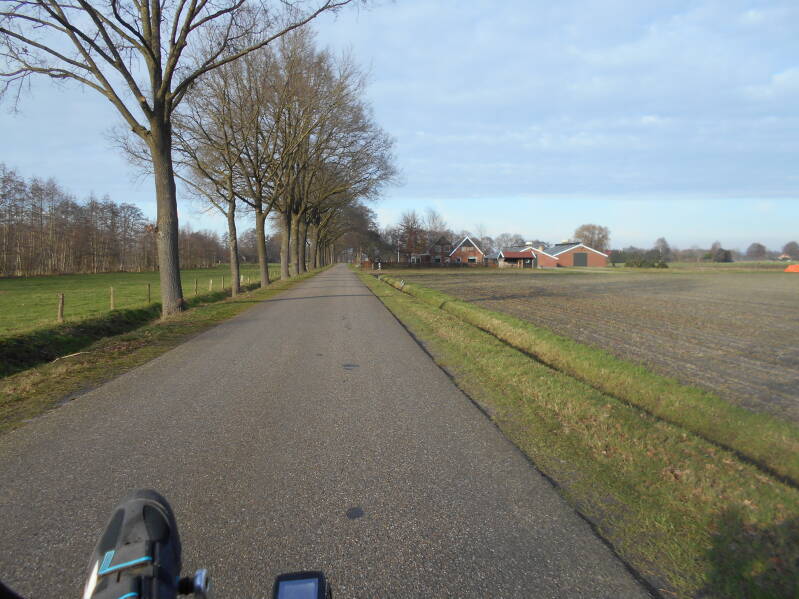 Als dank mocht ik vanmiddag een ritje maken. Maar ik verkoos toch mijn vertrouwde M5 in plaats van deze nieuwe exemplaar. De bakfiets hoeft de gemeentegrenzen niet over om mij. Ik had een ad hoc rit vandaag. Kijken waar we uitkomen. De wind waaide niet of nauwelijks, en ik had wel weer eens zin in om langs het stroomkanaaltje te fietsen. Dit is namelijk een mooi fietspad waar je heel mooi de Engbertsdijkvenen in kunt kijken, en nadien via een rustig fietspad richting Geesteren kunt.