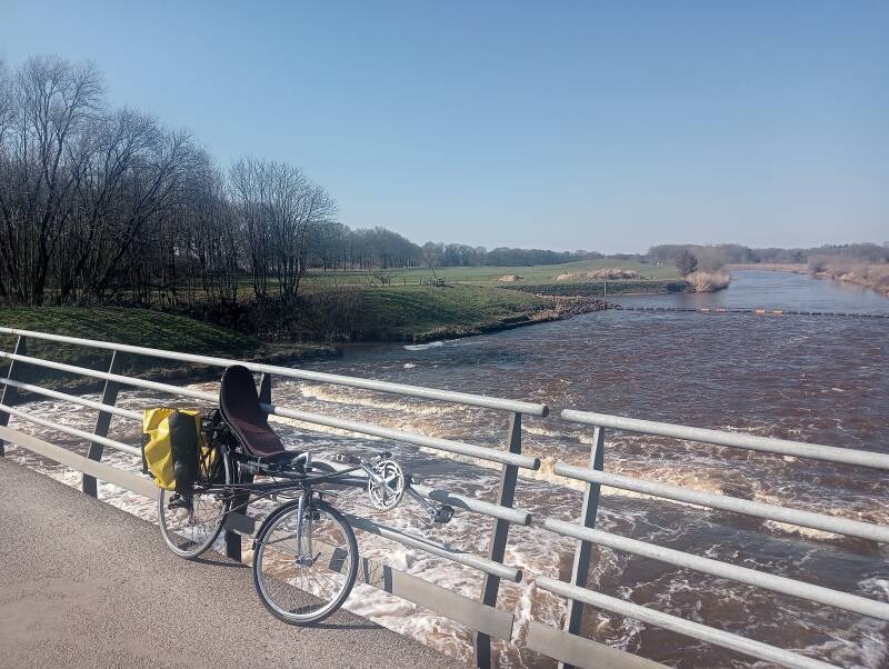 Ik sta te kijken naar het bulderende water vanaf de stuw bij Junne. Ik ruik de dennengeur van het bos bij het jagershuisje vlak bij Stegeren. Ik duik de N36 door de kleinste tunnel die ik ken. Zullen onze jongens ooit ook zo genieten van het fietsen? Nog even, misschien willen ze een keer mee. Samen praten over nieuwe banden en mooie plekken. Ik ruim de ligfiets op in de schuur. Ik hoor de kleine met een mond vol slagroom tegen de visite praten:,, ik kan al zonder zijwieltjes fietsen!”. Laat de lente maar komen.