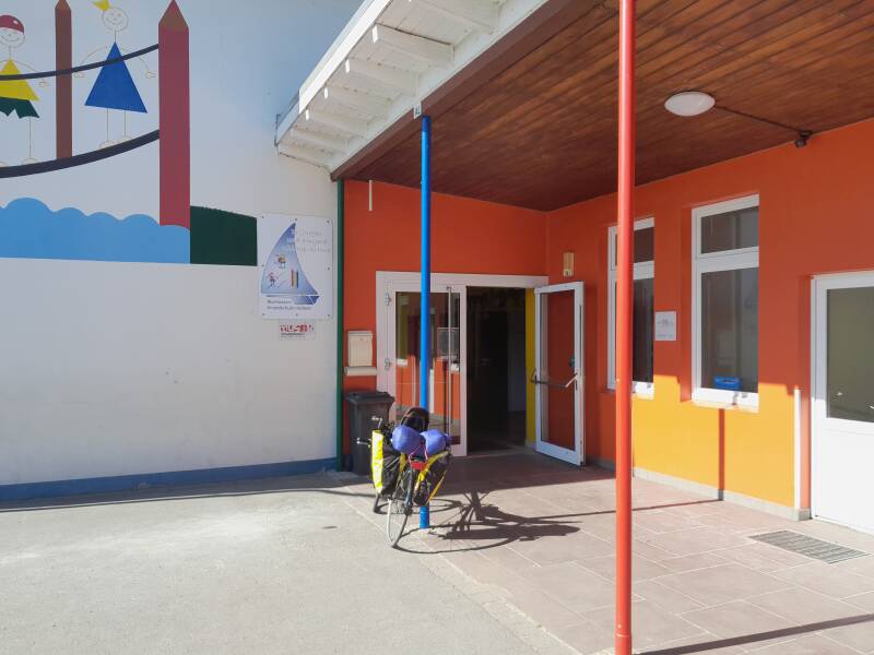 Ik moet tanken. Het water is hard gegaan met dat warme weer. Ik had ergens in Bramsche moeten aanleggen, stom. De prairie hier is dunbevolkt en er is buiten geen sterveling te bekennen. Tankstations of begraafplaatsen vind ik niet. Dan maar bedrijf of zoiets, maar ik moet zeker zijn van mensen anders is moeite van stoppen en afstappen voor niks. Bij een gehucht Haldem fiets ik langs een school en gaat bij mij een bel rinkelen. Kinderen spelen en moeten ook drinken. Ik fiets het schoolplein op.