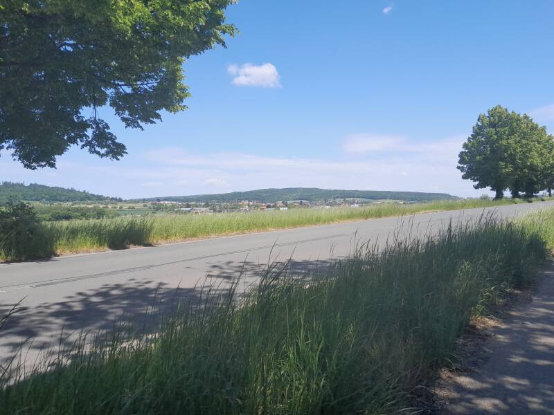 Voorbij Luhden draai ik rechtsaf de Bundesstrasse B83 op. Een alternatief heb ik niet kunnen vinden. Wel even de koppie erbij met deze vierbaansweg. Gelukkig is het niet lang en rij ik langs dalbrug van de A2. Hoe oostelijker hoe slechter de fietspaden. Bordje Ende en er onzichtbaar VE erbij: Viel Erfolg. Het klimmen begint serieus te worden. Ik moet aan de bak. Geen stoere borden met hellingsgraden, maar wel terug naar de laagste versnelling. Ik blijf aan het schakelen. En ik vind het ook nog leuk worden ook. Het wordt makkelijker als je je je mentaal op instelt. Afdalen vergt nogal wat concentratie. Geparkeerde auto's, putten in straat, overig verkeer op een fiets wat hard gaat. Maar eigenlijk is mijn fiets daar niet voor geschikt met die velgremmen.