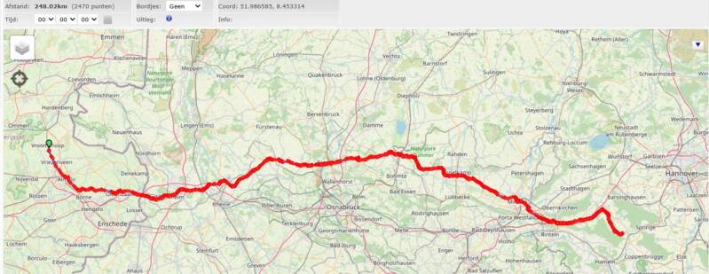 de Route was bijna 250 km