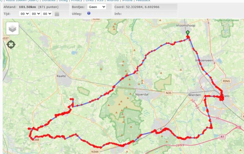 Maar de beruchte gele borden beloven niet veel goeds. Zelfs een verkeersregelaar. Deze wilde mij ook niet matsen. Dan maar de Wierdense brug. Even verderop weer omrijden vanwege werkzaamheden. Ach, uiteindelijk mag het de pret niet drukken.