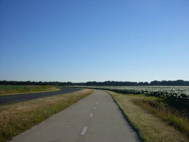 Menu voor vandaag. Niet de kortste weg, maar iets meer toeristische route. Geen ligfiets gezien onderweg.