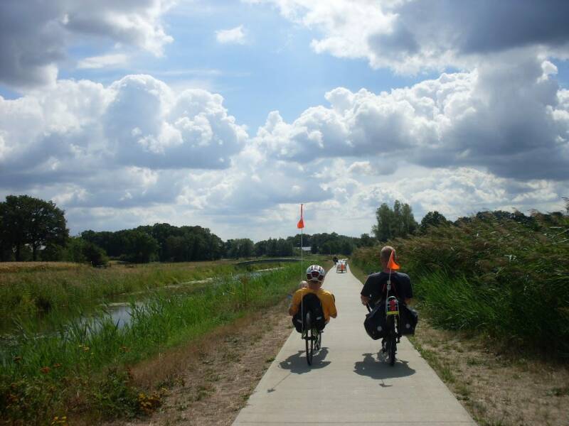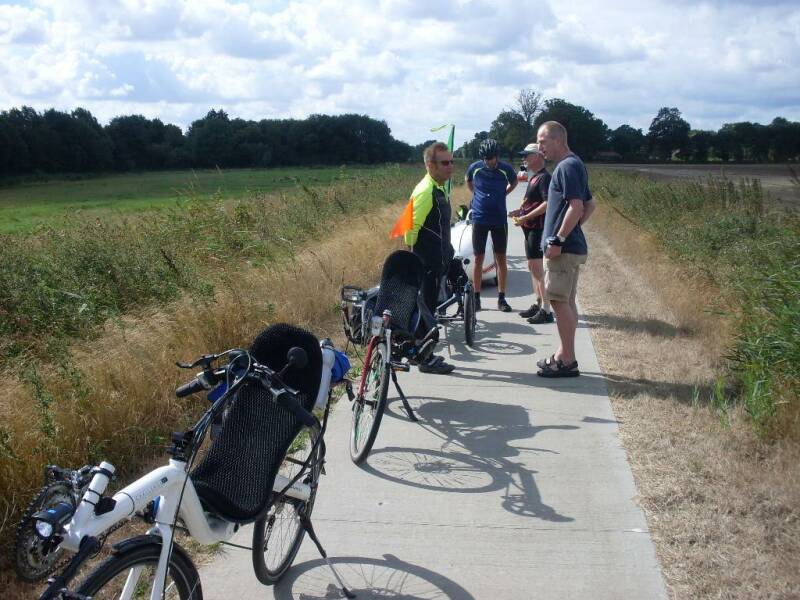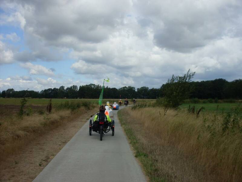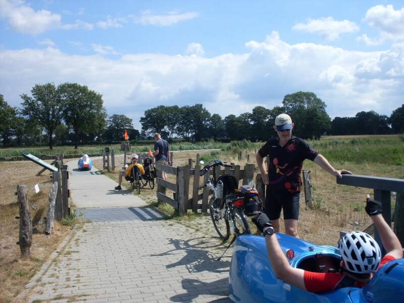 Om ook eens andere ligfietsers op te zoeken besloot ik eens mee te gaan met een tocht van Mooi Twente. Met verschillende startpunten maken ze maandelijks tochten tussen de 50 en 60 km. Deze tocht vanuit Delden naar Nijverdal en terug was wel mooi en een keer gezellig om meerdere mensen op te zoeken. Eerst vanuit Vroomshoop dus naar Delden, daarna naar Nijverdal, terug via een andere route o.a. Goor weer terug naar Delden. Daarvandaan weer terug met de fiets weer terug naar huis. Totaal zo'n 120 km, maar de provincie niet uit geweest. Al met al een mooie dag.